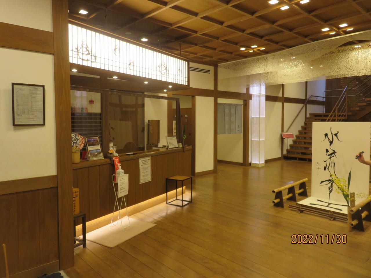 エレベーターを降りてフロントに向かう途中のエントランスは、和テイストのお洒落な造り