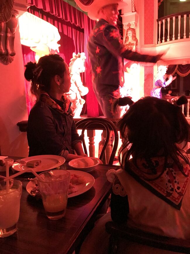 こんな感じ。舞台と一体化。この日、昼ごろ雨がふり、ランチショーの間、雨宿り。終わる頃には、雨もあがり、パレードも、雨天仕様(レインコート姿)と晴天仕様を見ることになることを、知ることなく楽しみました。