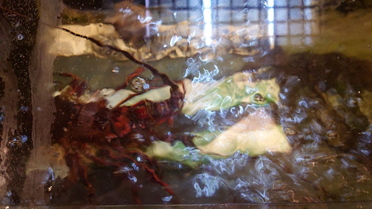 テーブルの生け簀 イセエビのヒゲが出てきた
