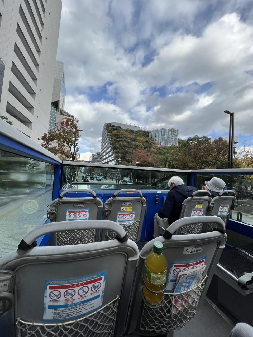 今日はド定番福岡観光で、ルーフトップバスに乗ります♪福岡市役所前ふれあい広場 公園・植物園