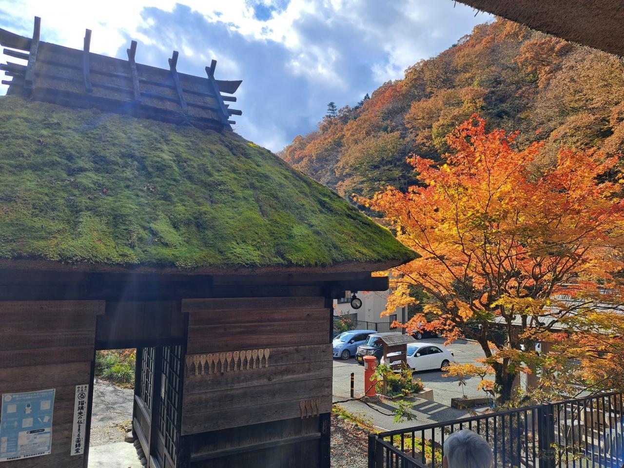 四万温泉ちょうど紅葉のいい時で、車でささっと回るつもりだった夫が