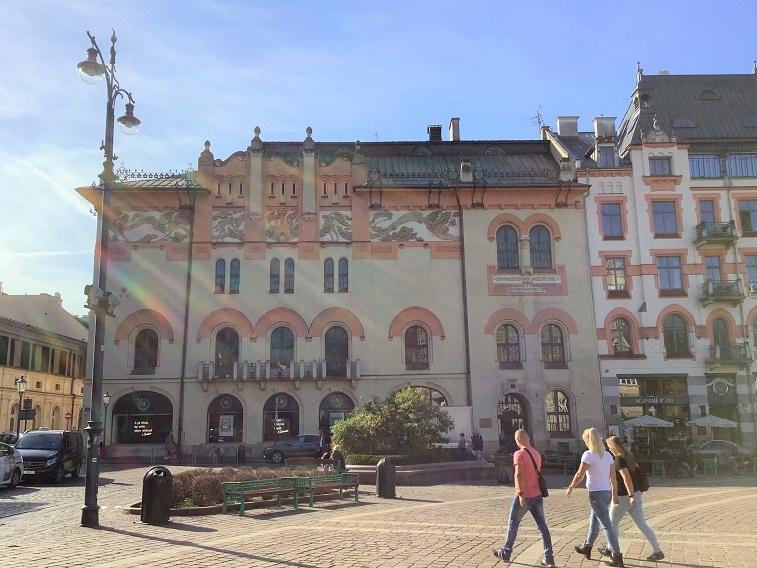ようやくクラクフに着き、翌朝はツアーの出発前にサクっとアールヌーボー建物巡り♪
