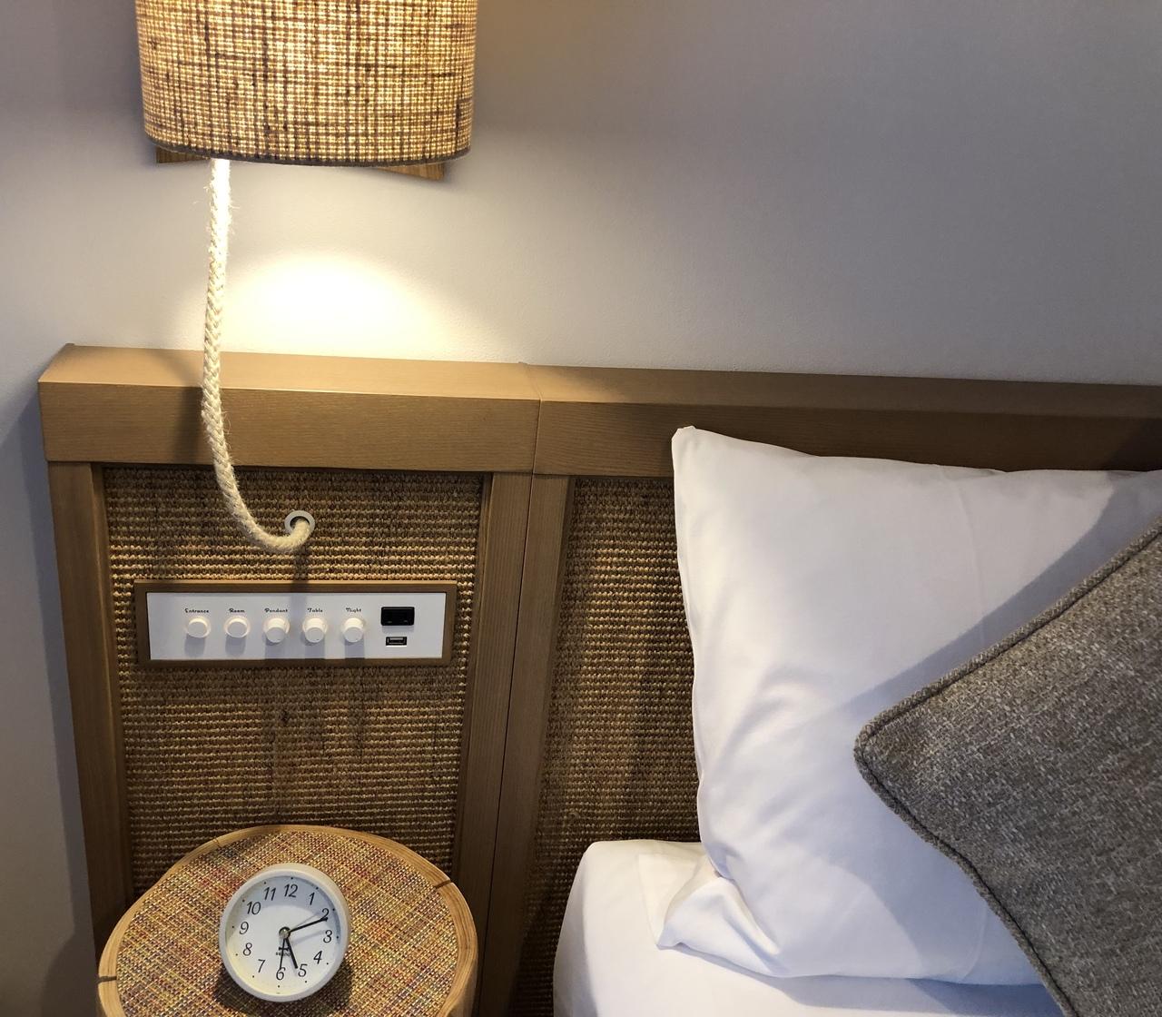 枕元には部屋の明かりのスイッチ、目覚まし時計