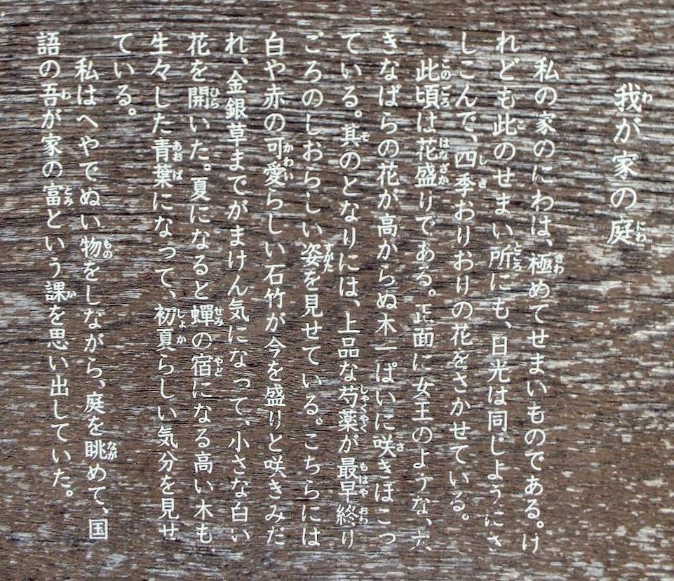 上記の文の中にある狭い庭にあるみすゞの詩の石碑。