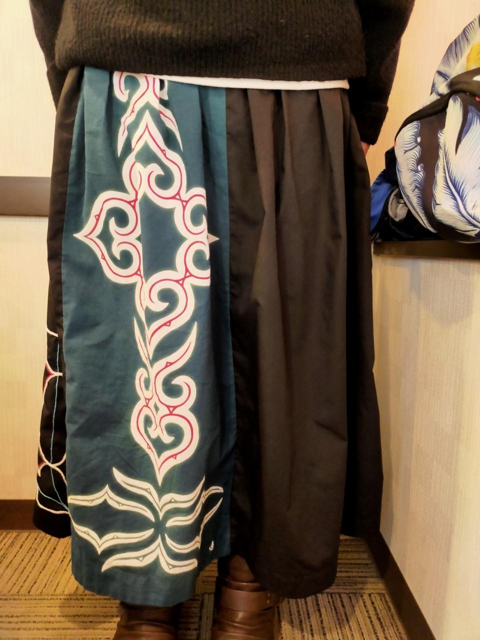 裏はアイヌ文様のチェーンステッチよー。刺し子糸で刺したそうです。なんという素晴らしいアイディア!