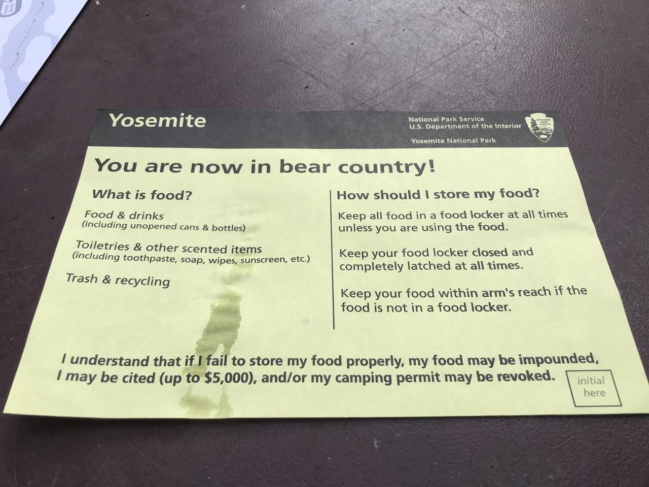 ちょっとだけ違うところは、ウェブサイトのほうにはヨセミテバレー内ではキャンプ場内を除いて薪を拾うのは禁止と書かれているのに対し、紙のほうにはヨセミテバレー内では薪を拾うのは禁止と書かれているのとか。 -