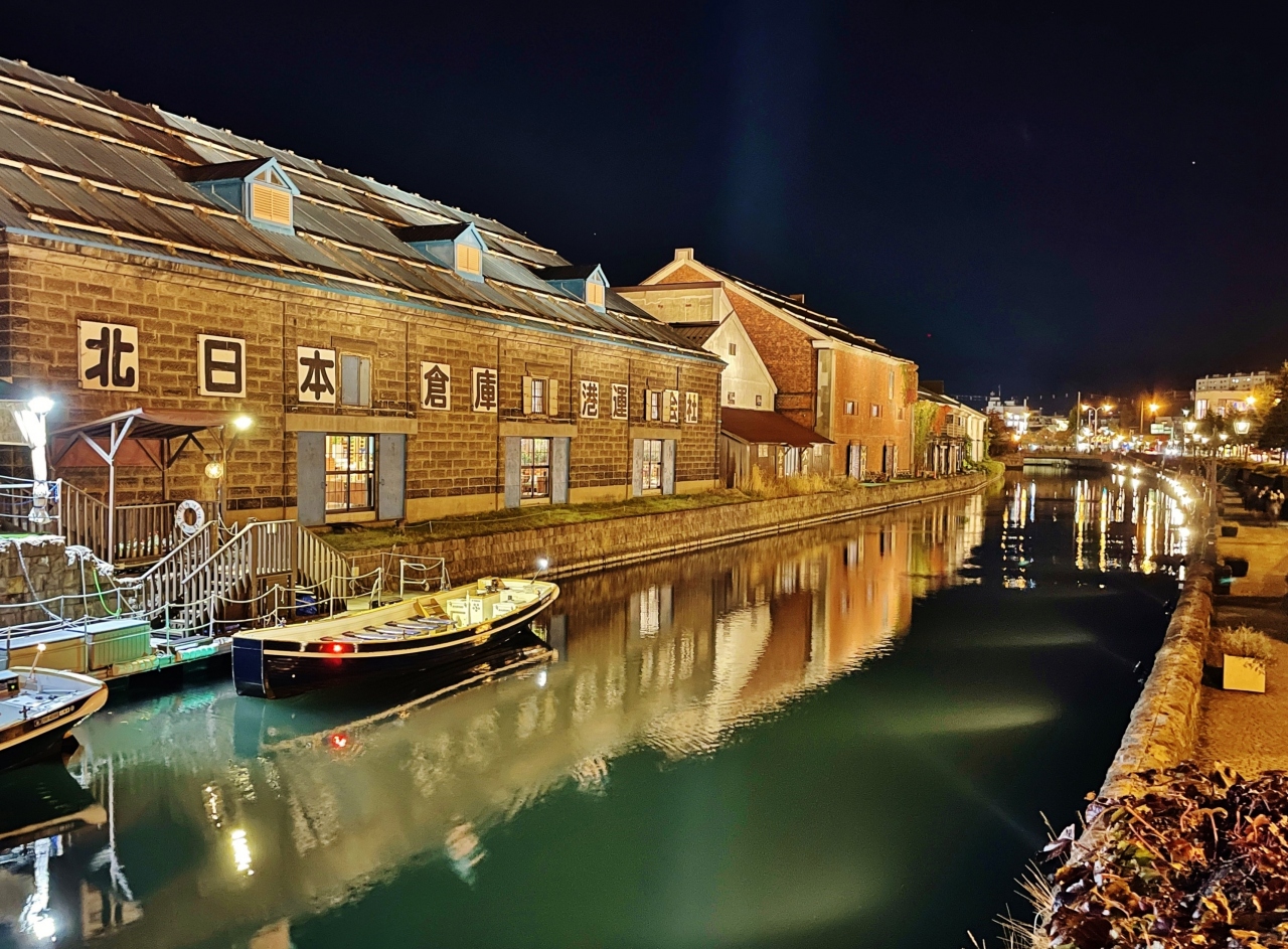 展望台から眺める夜の小樽運河。あまり知られてないのか誰もおらず、景色を独り占め(^^♪