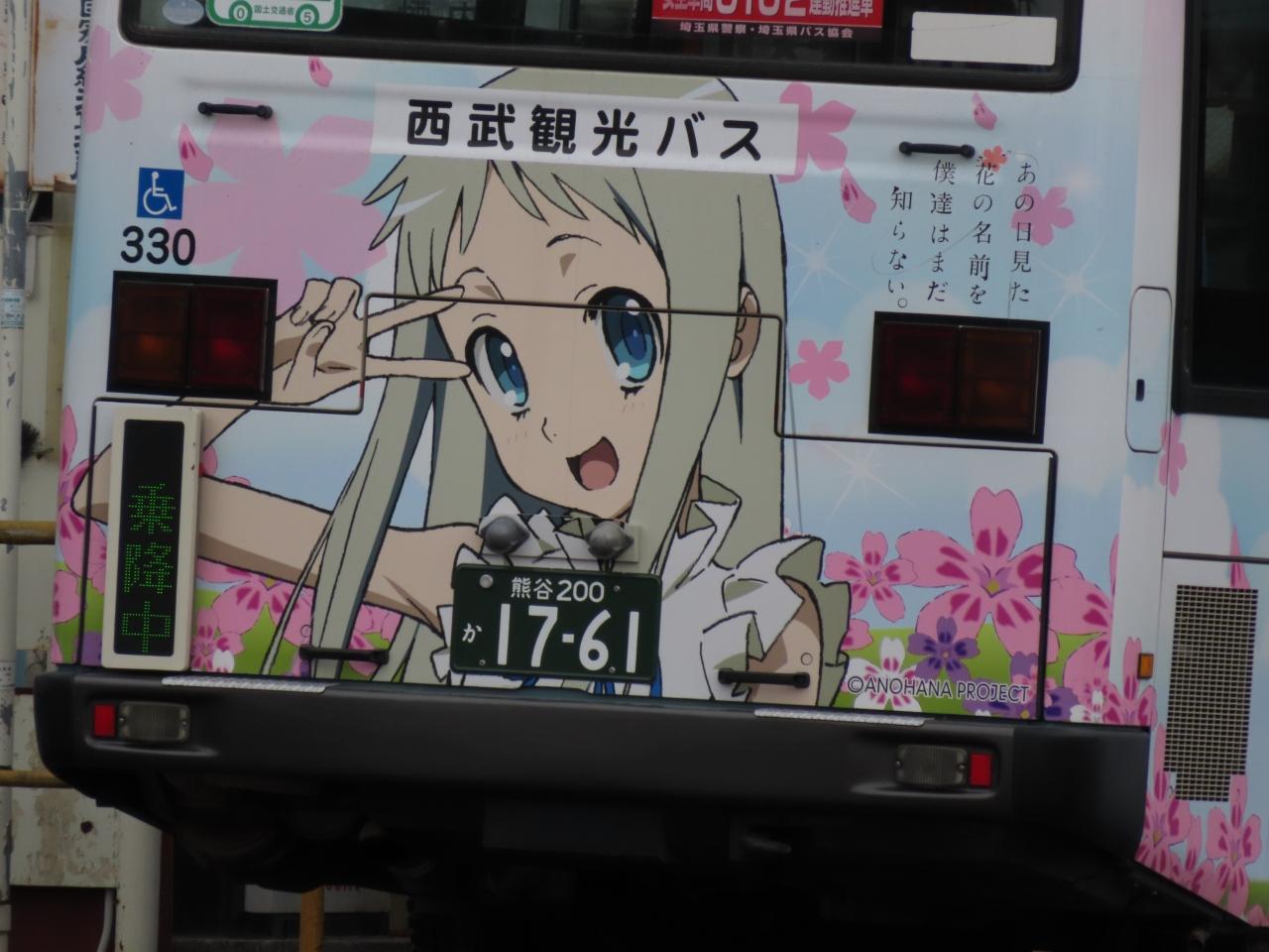 お、「あの花」バス発見!10年以上前のものなのに、いまだに人気が絶えない…みたいです。こんなおじさんが知ってるくらいなのでさもありなん。とてもかわいくてせつなくて…、じんとくる傑作でした。