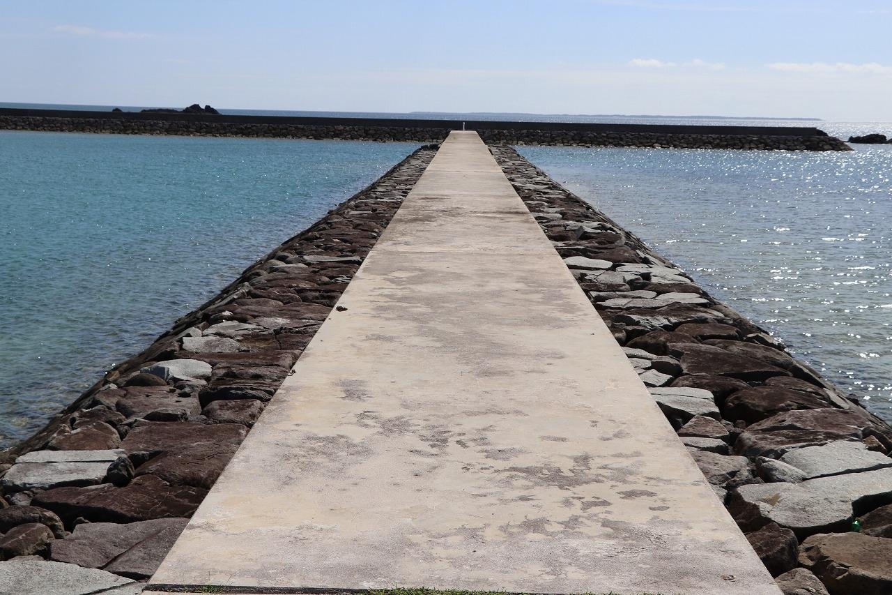 写真は「ちゅらさん」ロケ地で、ヒロイン恵里が幼少時代、上村文也に「結婚しようねぇ~」と手を振っていた細崎海岸の防波堤です。