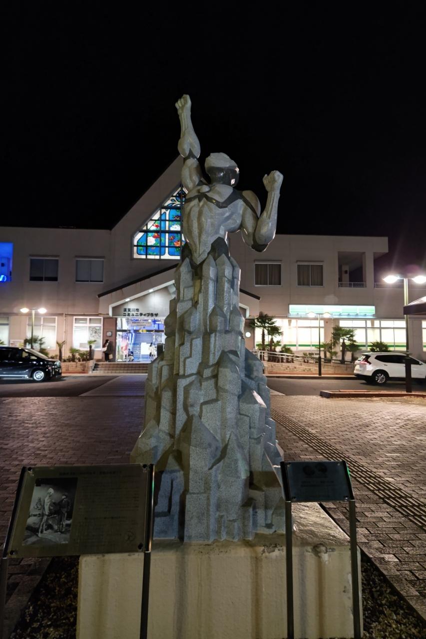須賀川は円谷英二監督の出身地ということで駅前にはウルトラマンの石像が設置されています。