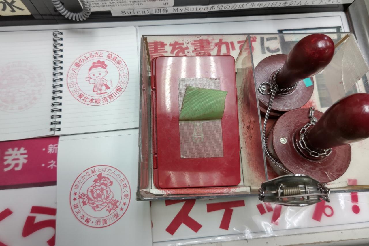 みどりの窓口で声をかけスタンプを出してもらいます。