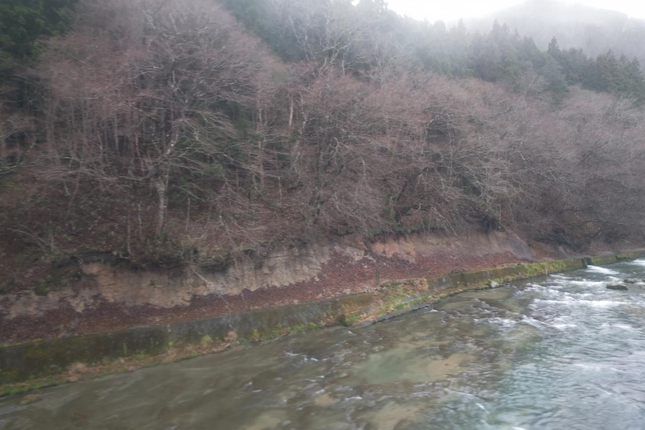 夏井をすぎると風景は一気に変わり、山の中を走るようになります。小野新町からいわきの一つ手前の赤井まではこのように夏井川に沿って走ります。 -