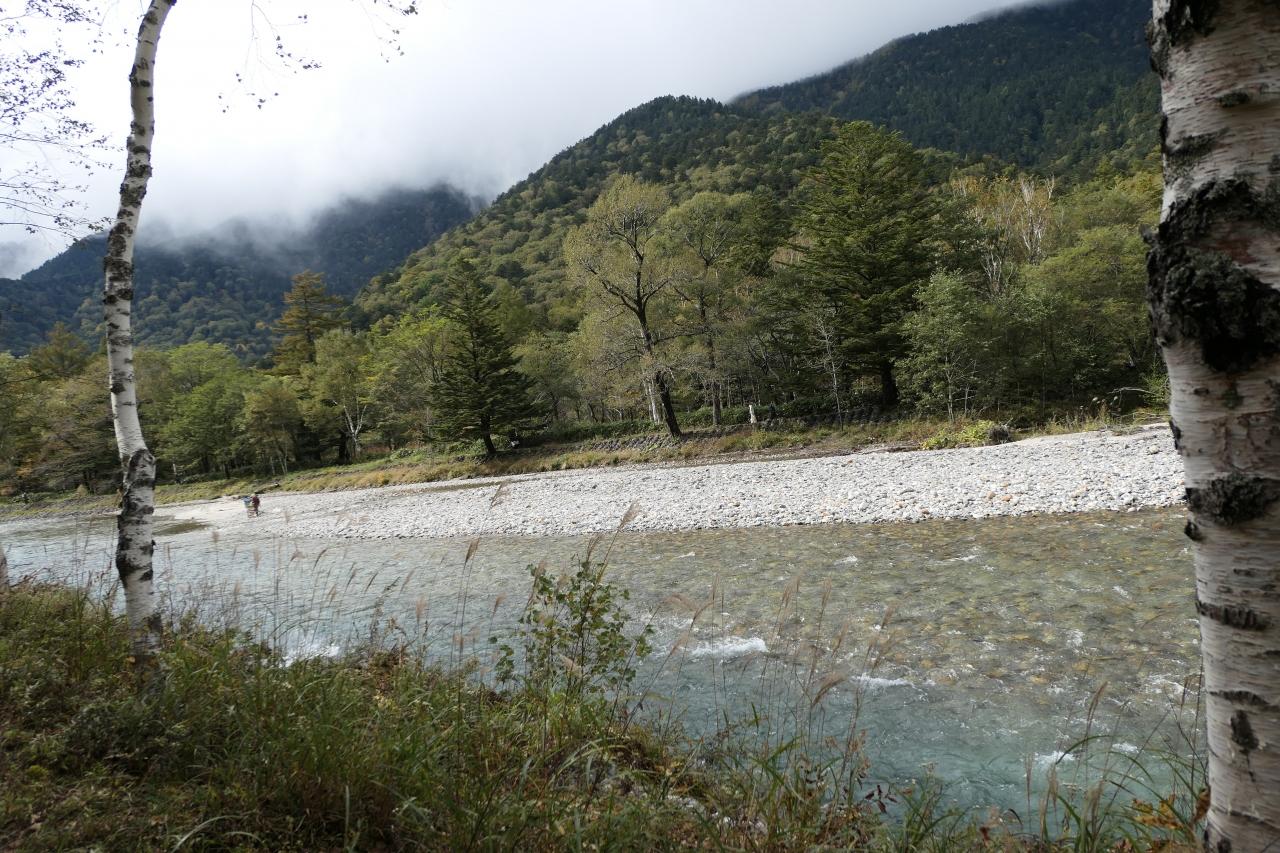 上高地帝国ホテルから河童橋へ梓川に沿って歩く。