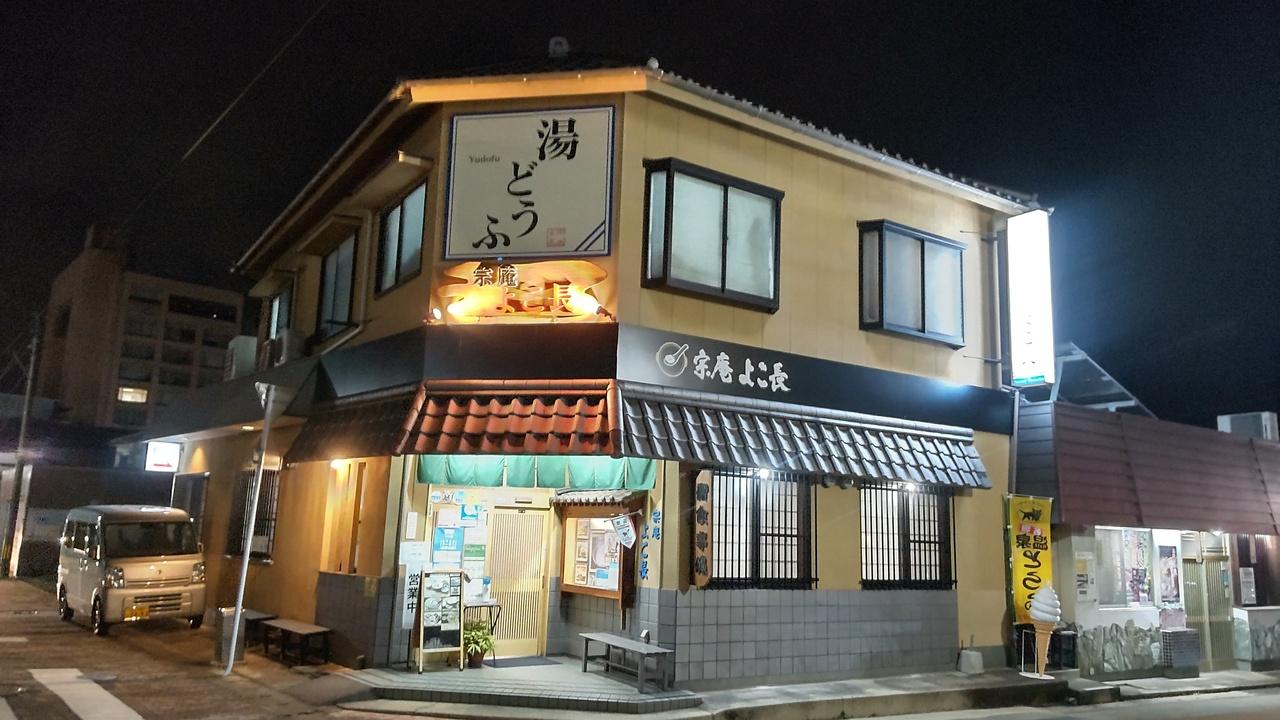 ここの温泉湯豆腐は味がついているのでタレなくても美味しい。 -