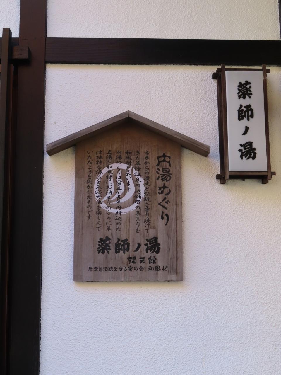 内湯めぐりは宿主が長年丹精込めた名湯を和風村にお泊りの方々に草津独特の源泉と入浴方法を楽しんでいただこうと開かれたものです」