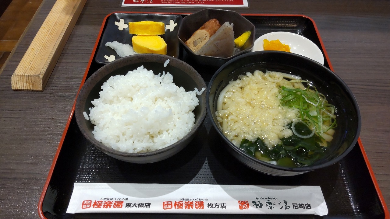 今回は、「半玉うどん定食」を頂きました。極楽湯東大阪店 お食事処 グルメ・レストラン