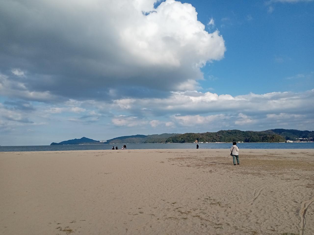 何という美しい砂州、白浜でしょうか!足跡がない上に南北に広大で、別世界のような美し過ぎる光景に絶句します!