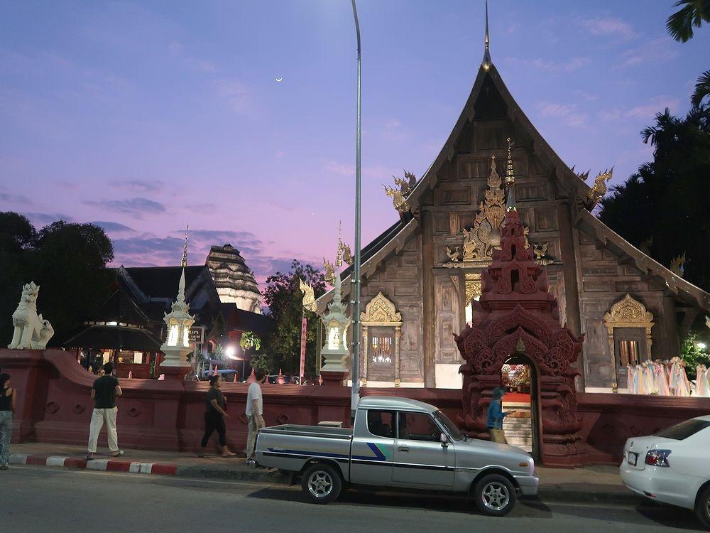 タイ北部を代表する観光都市・古都チェンマイ。町の中には多くの美しい寺院がコンパクトに点在し、昼夜を問わず容易に歩いて観光することができた。(写真は、Wat Phantao (ワット・パンタオ)の夜景)
