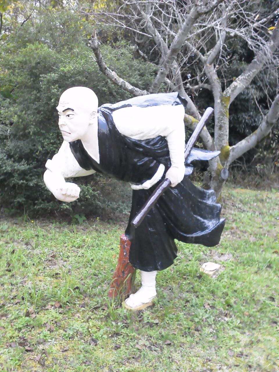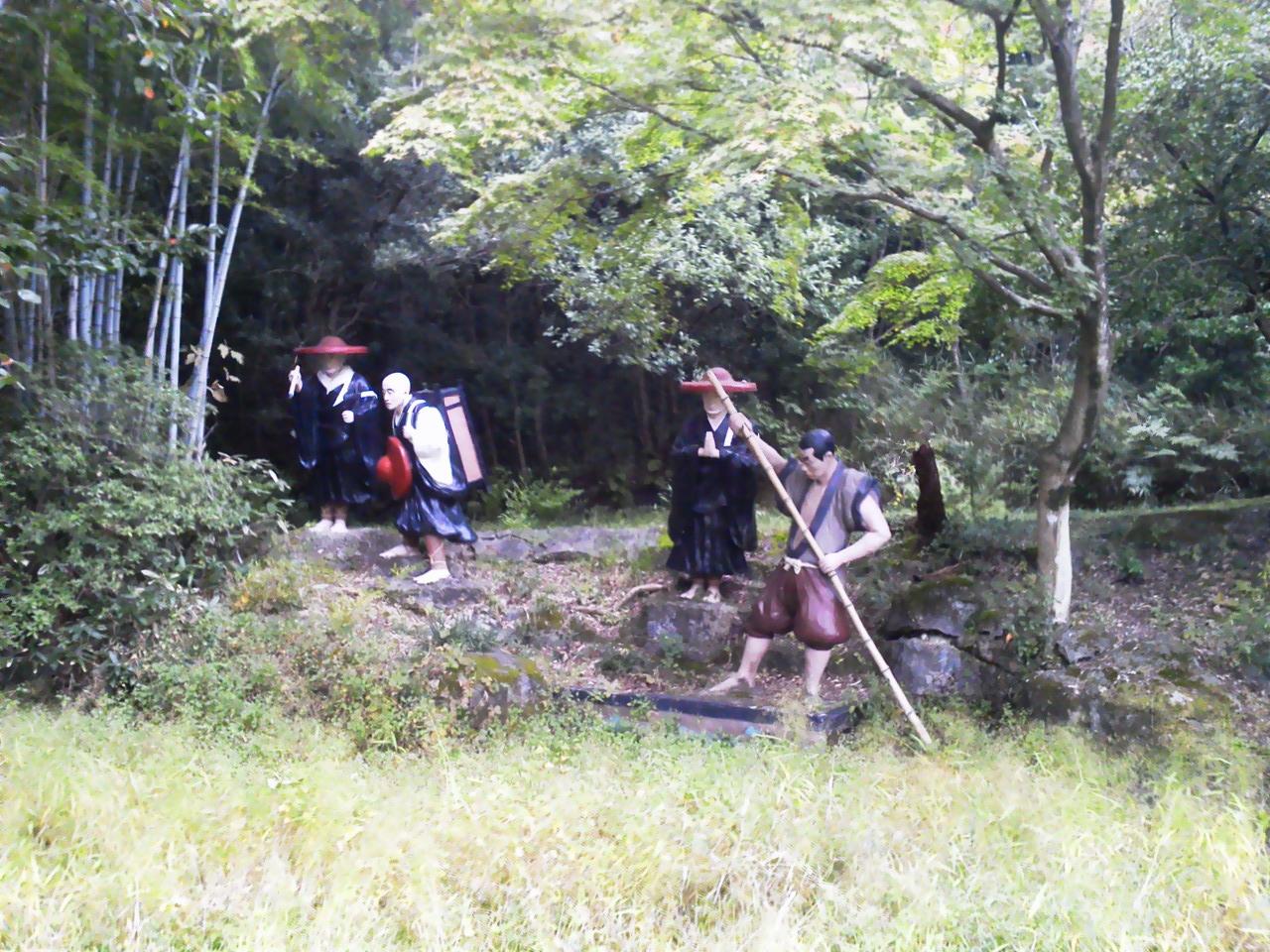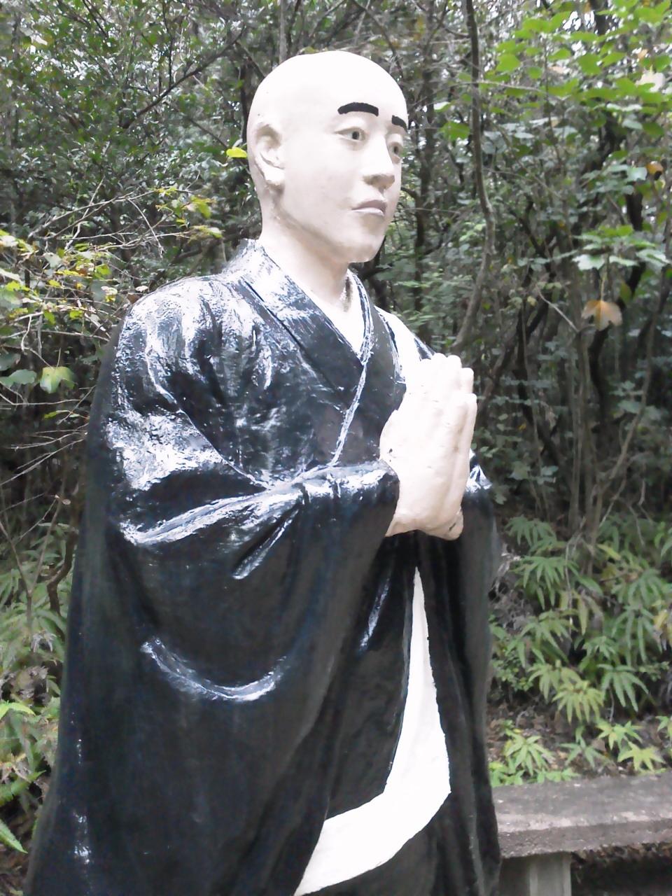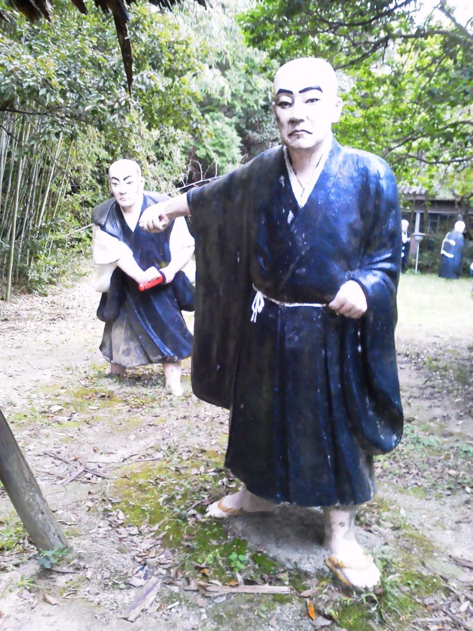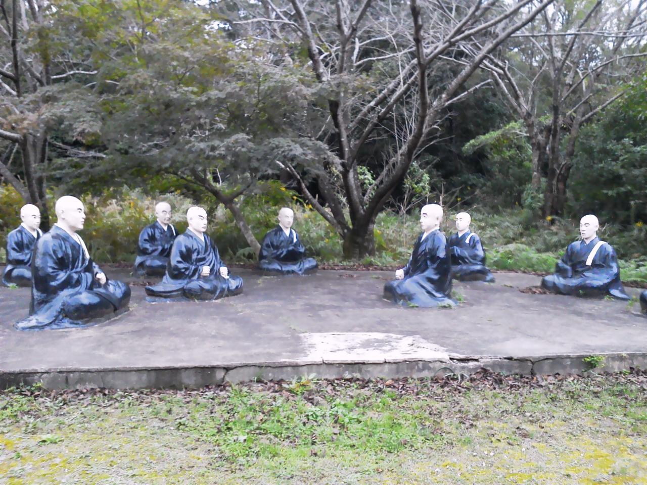熱中症の坊さんをキノコで扇ぐ坊さんたち