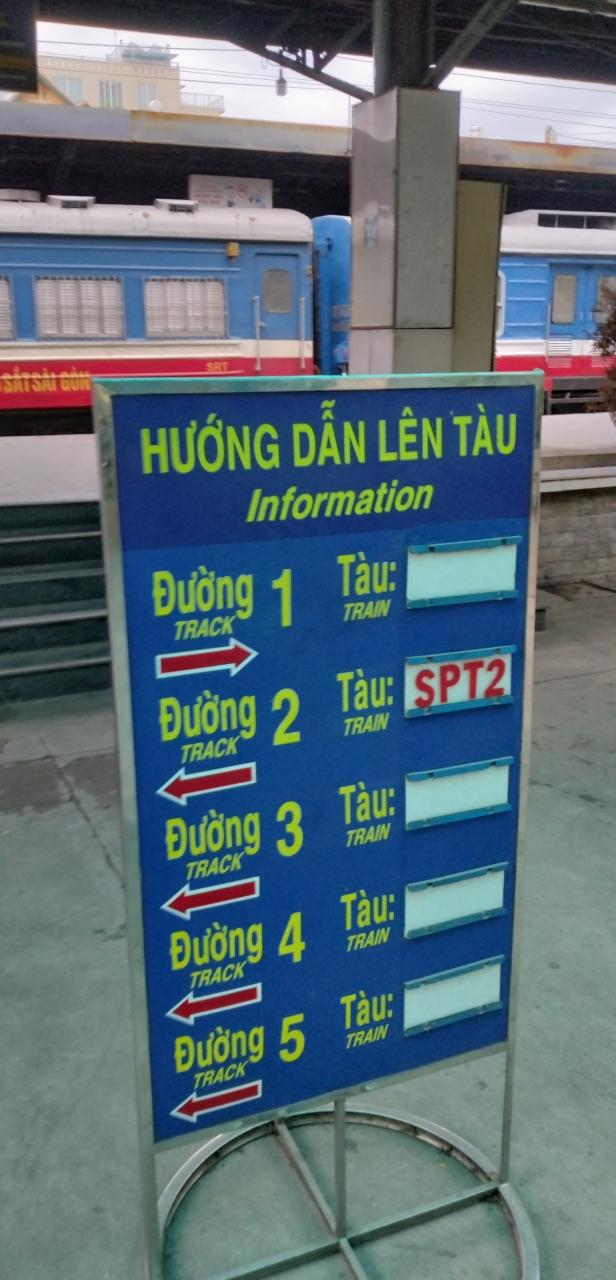 ちょっと余裕を見て30分以上前にダナン駅に着きました。これから乗る列車(SE1)の列車名は掲示板に表示されていました。