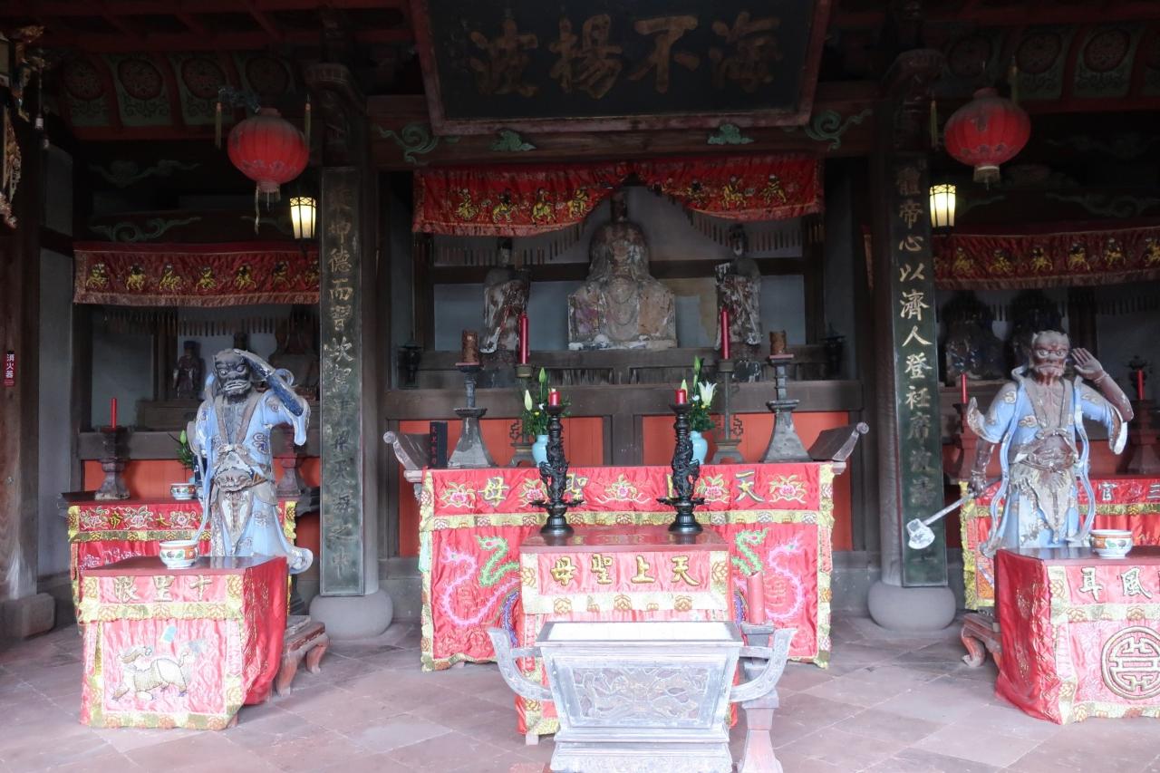 一つのお堂に関帝、観音、韋駄天が祀られています。