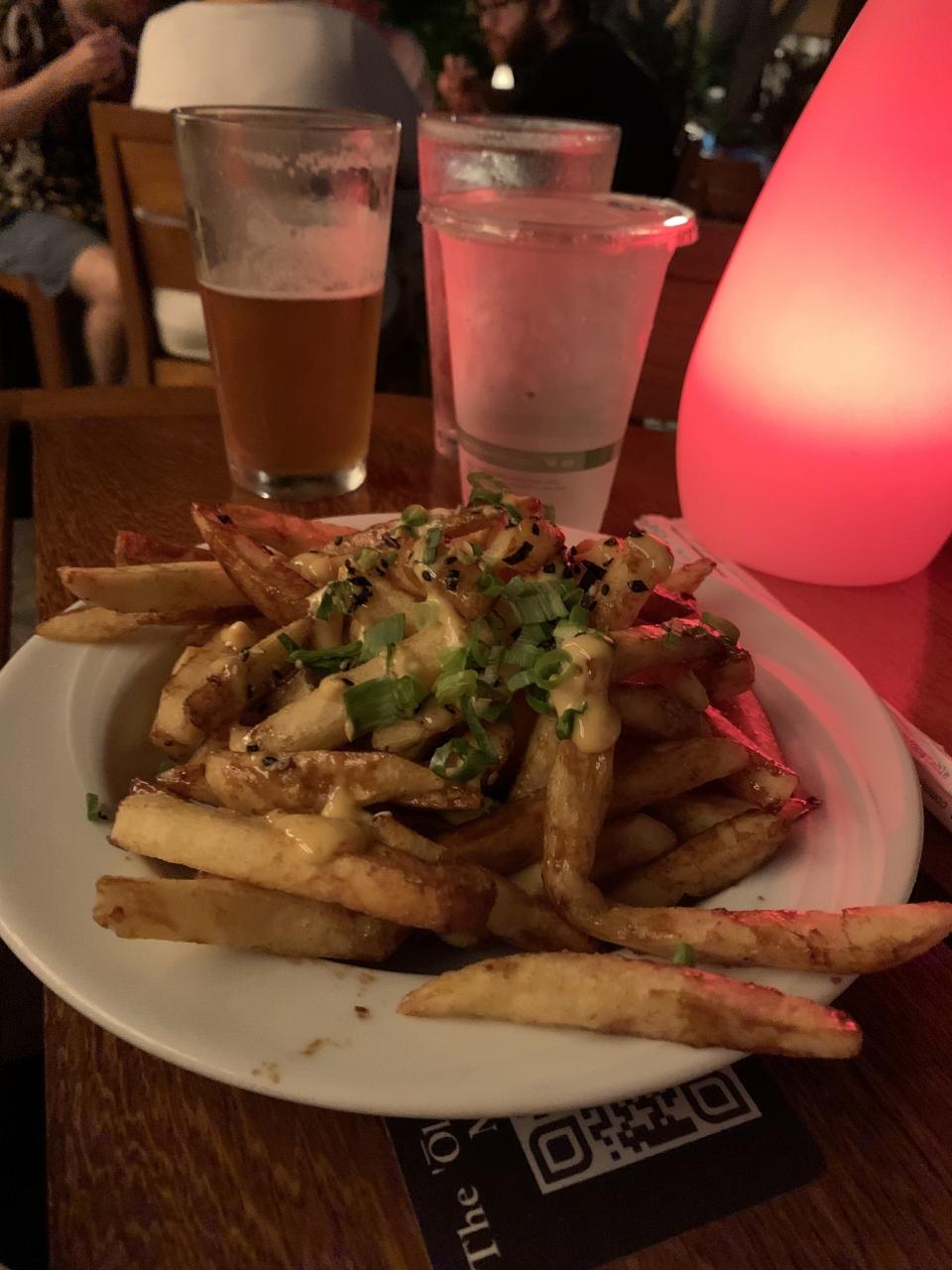 ビール($7)&アップルジュース($4.5)とバンバンフライ($9)