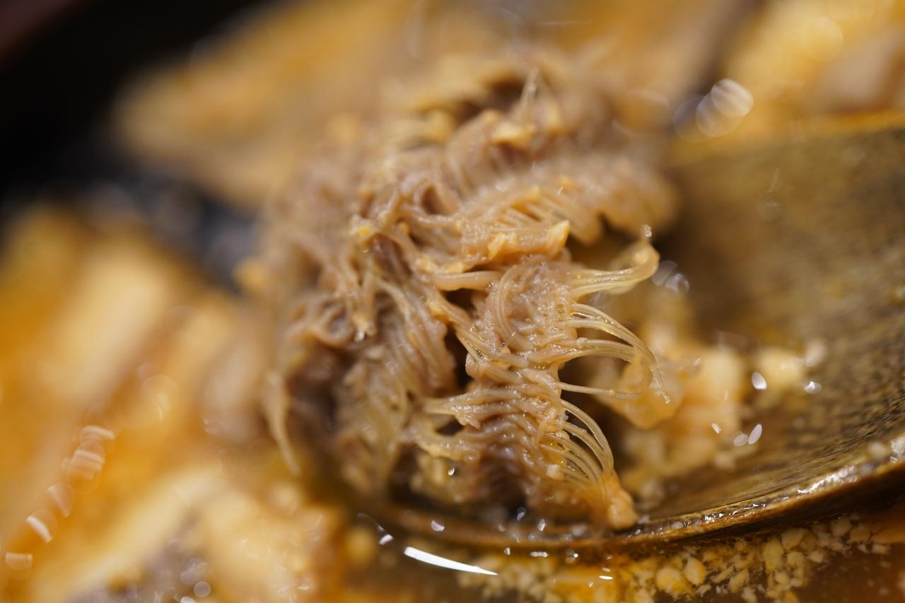 さらにごちそうです。ゲジゲジしたのがたっぷり。味は無いけれど、食感と纏わりつく肝の欠片…