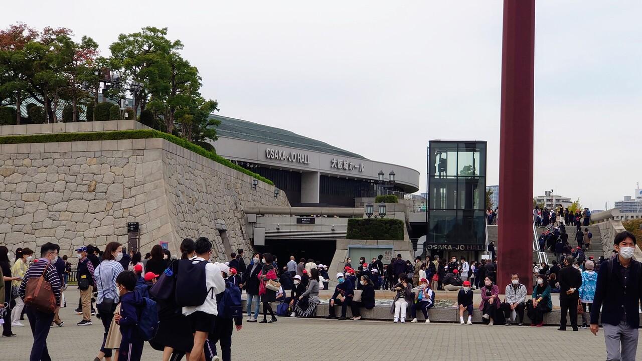 大阪城ホール前も親子連れがたくさんいました。