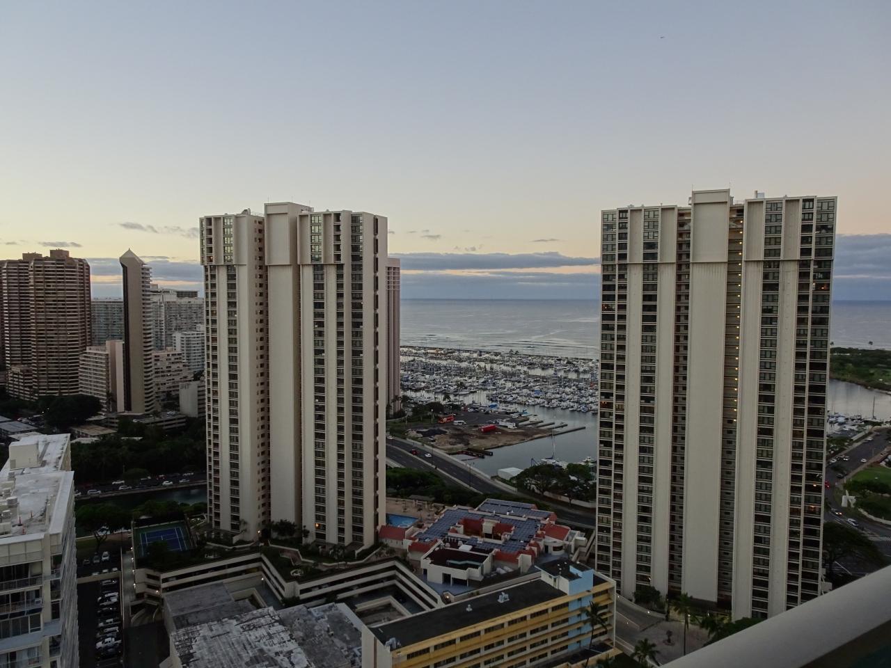 チェックアウト前に、部屋からの眺めを撮影。それにしても3日間ともいい天気で良かったです。アラ モアナ ホノルル バイ マントラ ホテル