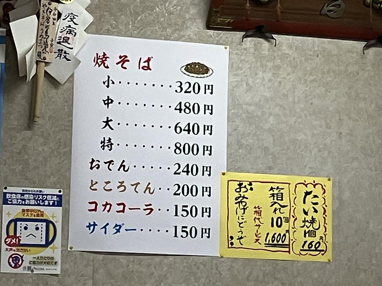 中途半端な時間だったので、開いてないかと思ったのですが、開いていてくれました。しかも安っ!焼そば小で320円。安いので旦那は大で640円に。