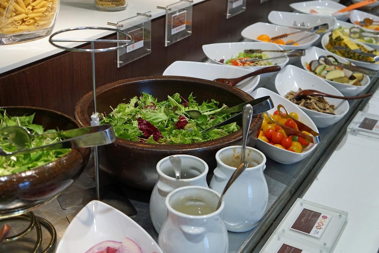 サラダのコーナーも充実していて、新鮮な野菜がたくさん並んでいます。これで毎日シーザーサラダを作っていただきました。