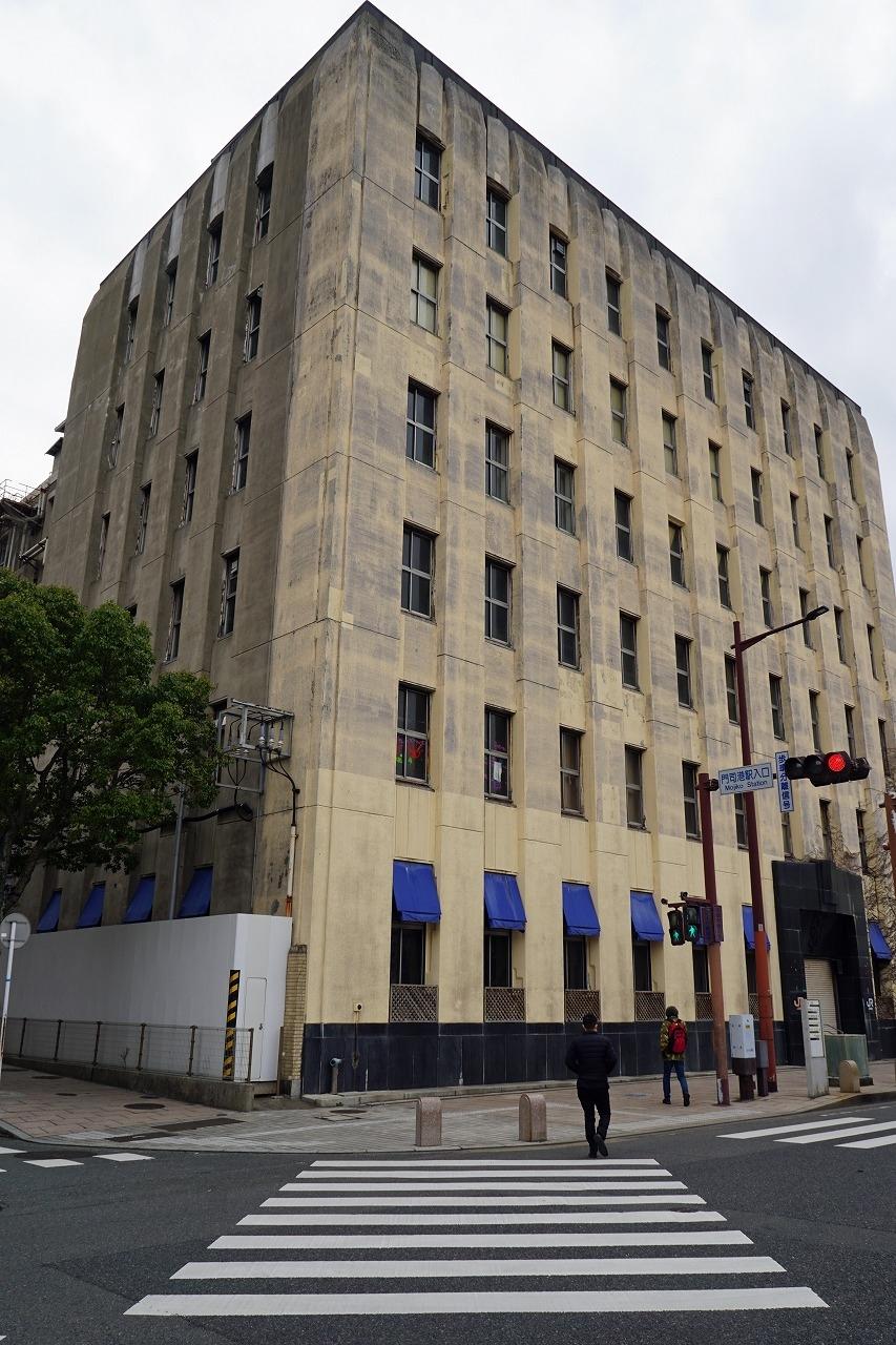 往時の外観はタイル張りで、窓の上下と窓台は黒御影石貼りだったようですが、現在は失われてモルタル吹付に変わってしまっているのが残念です。