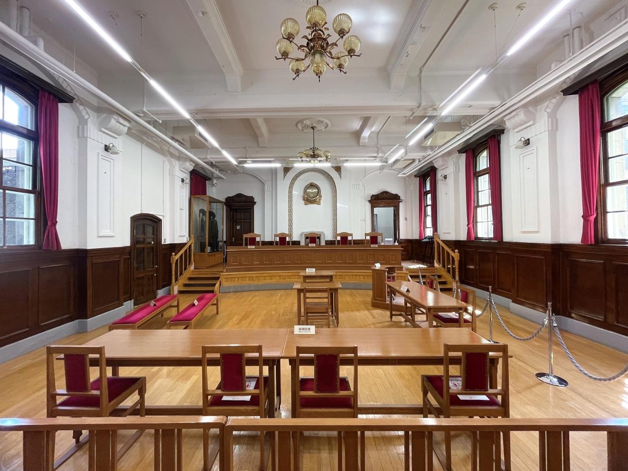 こちらは刑事法廷展示室。 旧控訴院時代の名残を感じられますね。