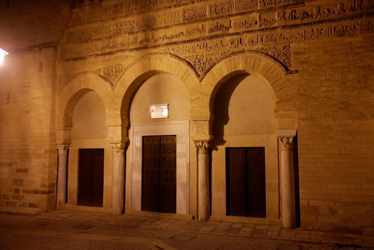 アフリカ最古のグランド・モスク。ローマ・ビザンチン遺跡から流用されたであろう列柱が周囲を囲んでいる。