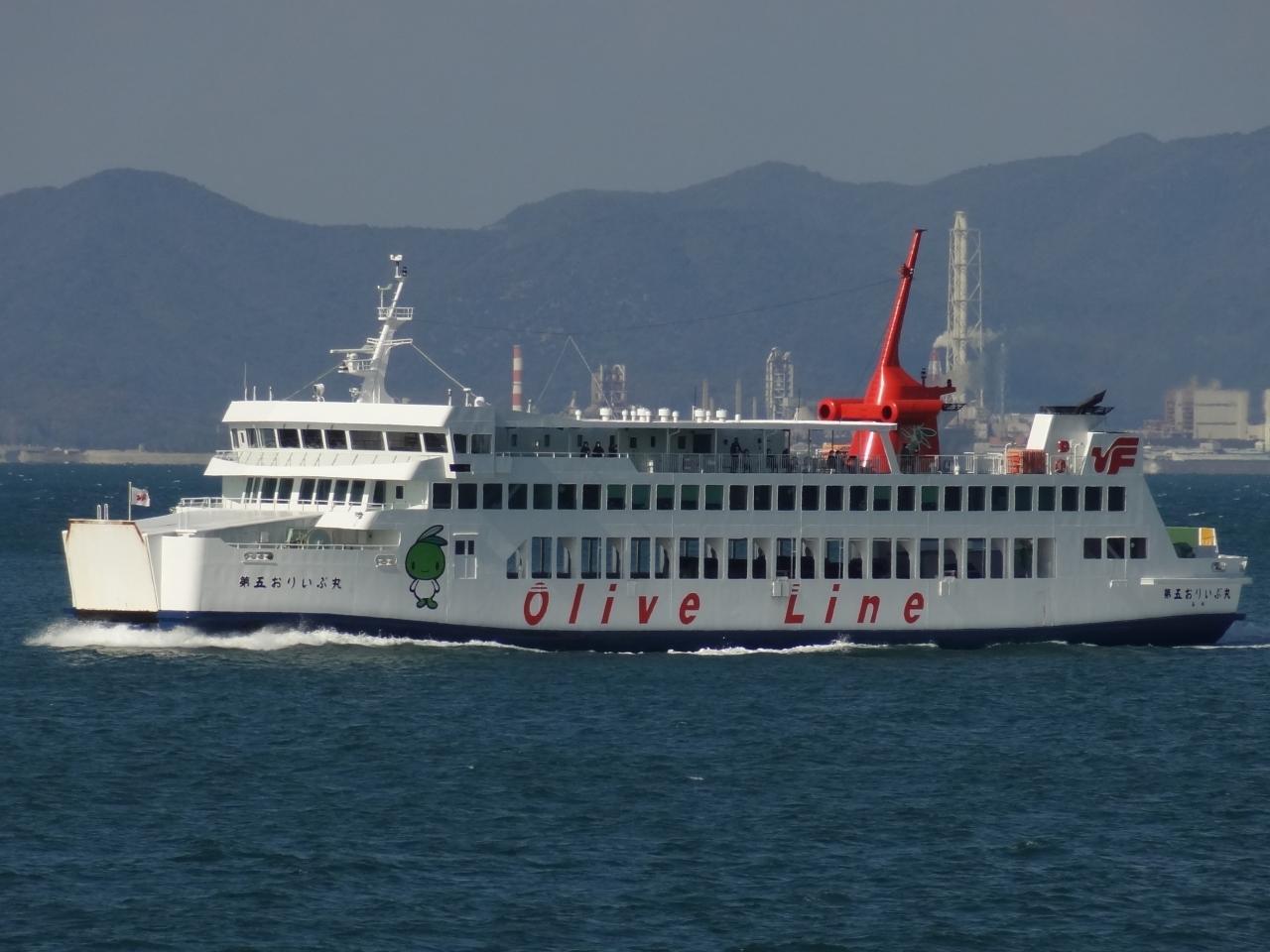姫路を11:15に出航した、小豆島フェリー/第五おりいぶ丸(1326t)ですね。 -
