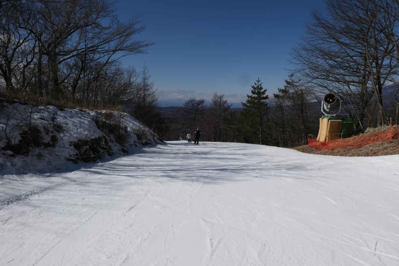 人工雪のコースだけが白く、周囲は雪のない風景で