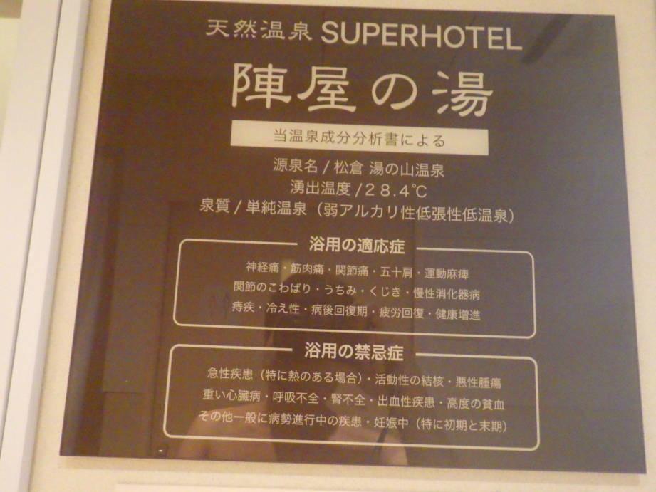 他のスーパーホテル同様にかなり塩素消毒の臭いがするので、部屋のお風呂で十分でした。