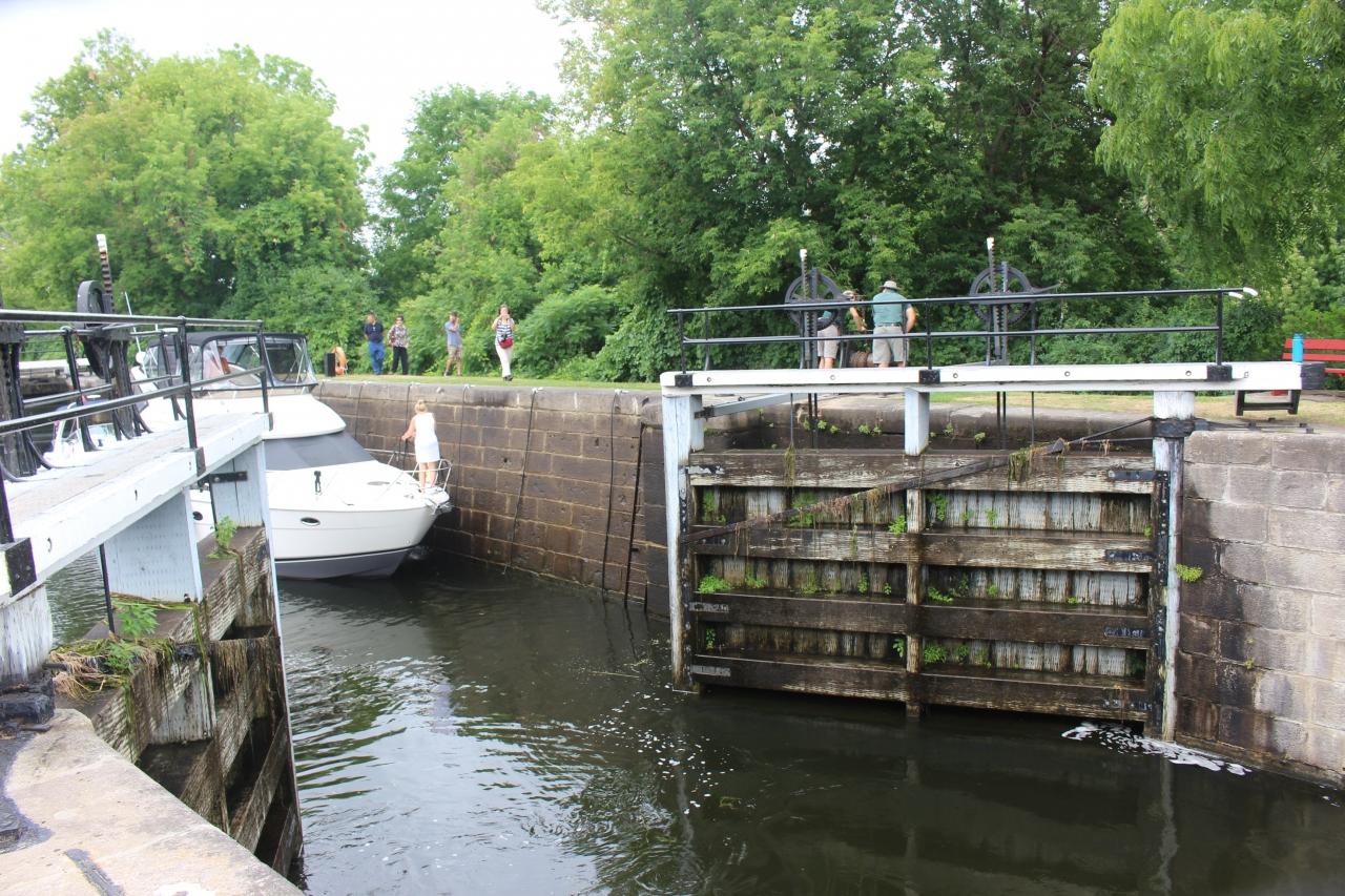 あまり知名度がないのか、観光客が少ない感じの町でしたが、Rideau Canal National Historic Siteに指定されているMerrickville Lockstationがあり、手動で開ける水門でボート好きな人達がリドー運河で順番待ちしている姿が見られました。