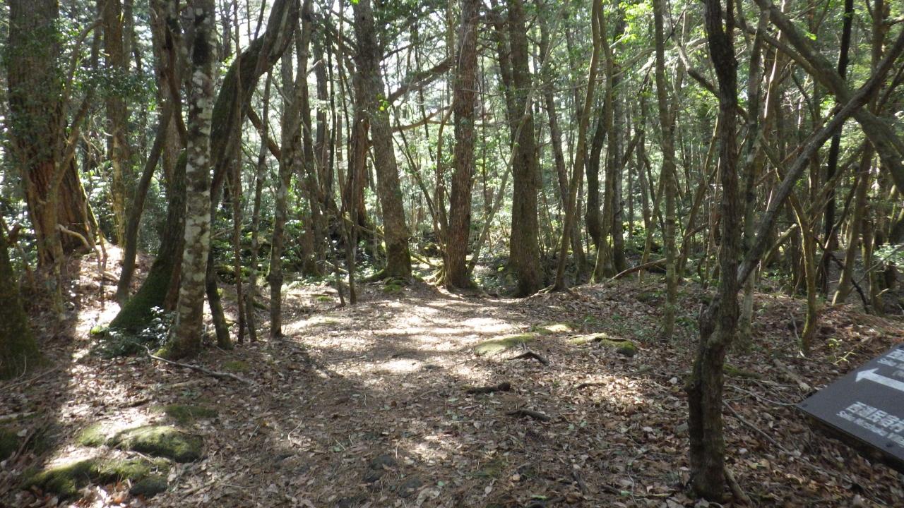 蝙蝠穴の見学は12月から3月17日まで閉鎖 ネーチャーセンターで青木ケ原樹海の地図を頂き説明を聞き、中に入ります。ナンバー表示された遊歩道が作られ、地図を確認しながら、景色はほとんど同じ苔むした岩、同じような樹林の中を歩きます。 -