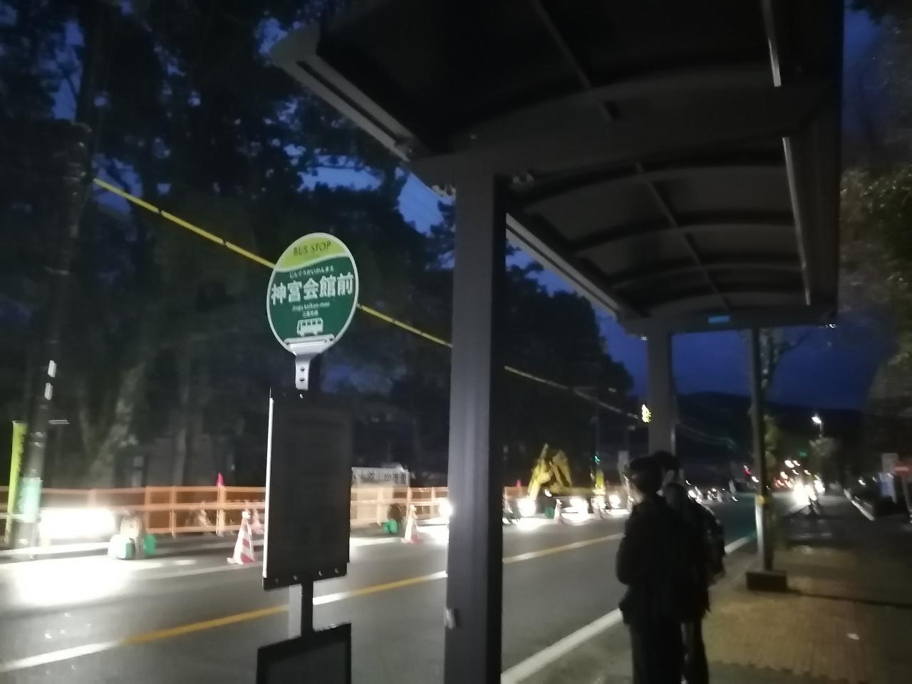 外宮前のバス停16:34発のバスに乗り、伊勢神宮内宮まで行かずに神宮会館前バス停で降りました -