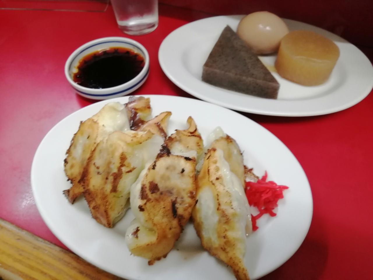 餃子と唐揚げだけにしようと思っていましたがおでんも注文しました。おでんはすぐにでてきました。おでんは1つ130円で4つで500円になるようです。