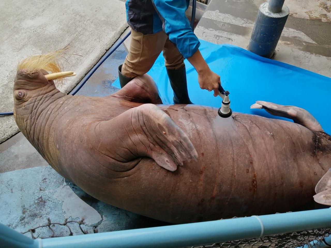 ちょうどセイウチふれあいタイムが始まるようだったので見てみました -