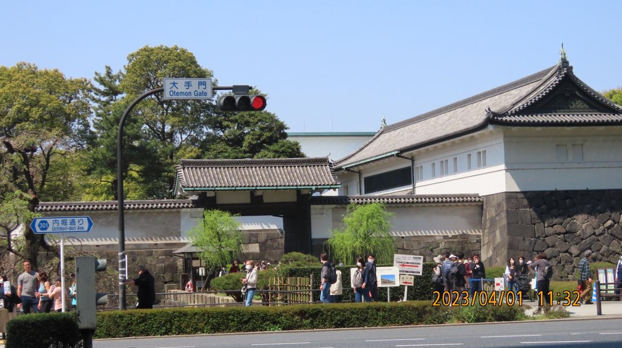 4月1日、午前11時20分過ぎに東京駅より大手町を歩き和田倉堀横にある日本生命丸の内ガーデンタワー前の道を通って、大手門に行きました。 丁度、この日は皇居乾通りの公開日で沢山の観光客が来ていました。本日の訪問目的は桜と新緑の春爛漫の風景を見ることです。 アカボシシャクナゲとシャガや大島桜等が見ごろでした。