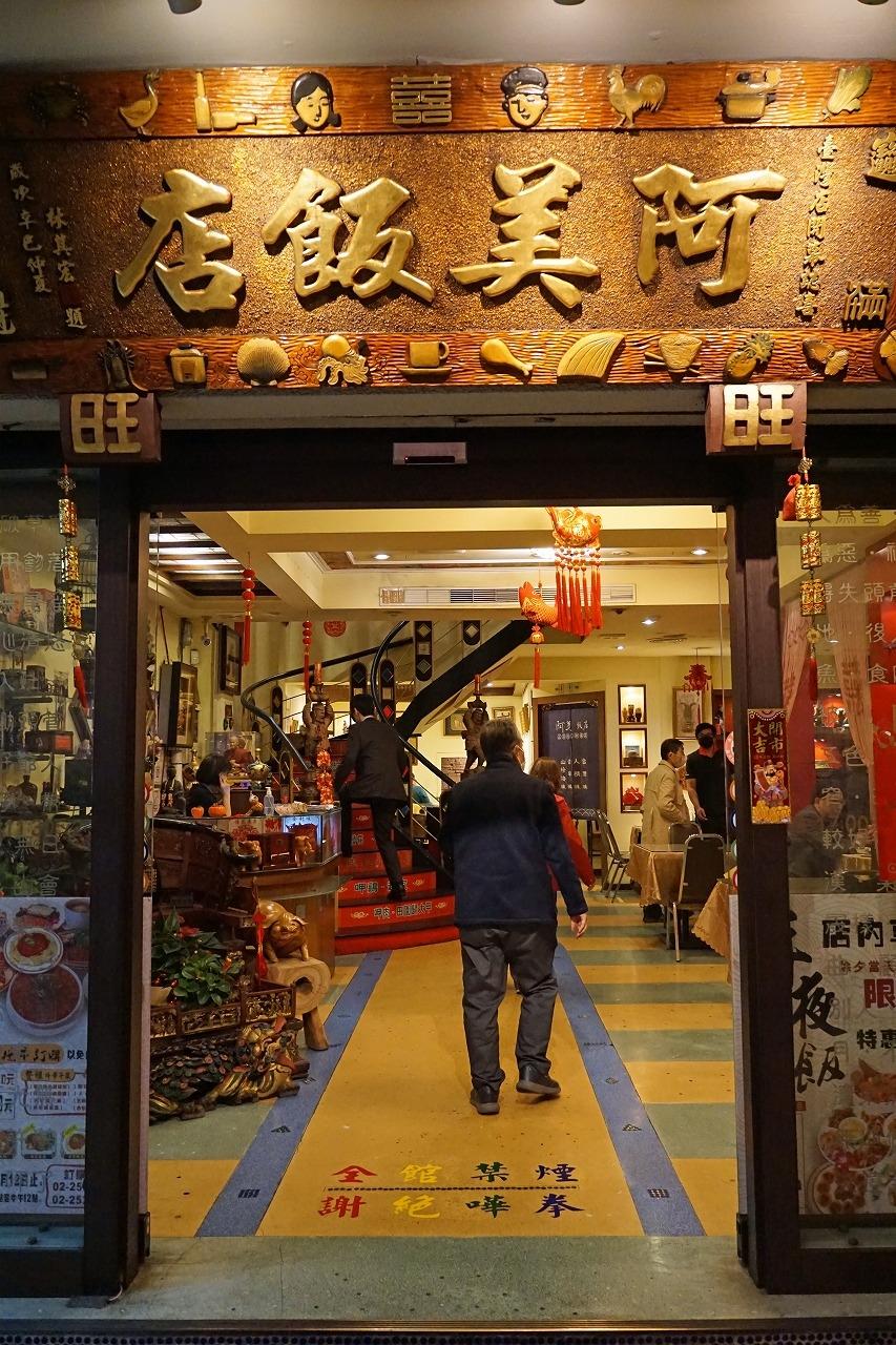 晩御飯は「阿美飯店」という店でした。ツアーの予定表では店の名前は分からないので後日調べることになるのですが、「台湾ナビ」によると台湾各地を食べ歩き、そんな中で見つけた美味しい食材を使って作るアイディア料理が話題を呼び、しだいに評判を高めたようです。常連客が増えていくうちに店舗は手狭になり、隣の敷地、隣の敷地を継ぎ足して今では3軒連なる数珠つなぎになったそうです。