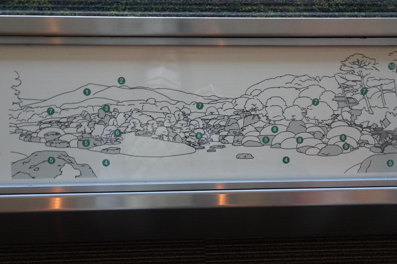 館内に入りまして、広々としたガラス越しに庭園をまず眺めることができます。