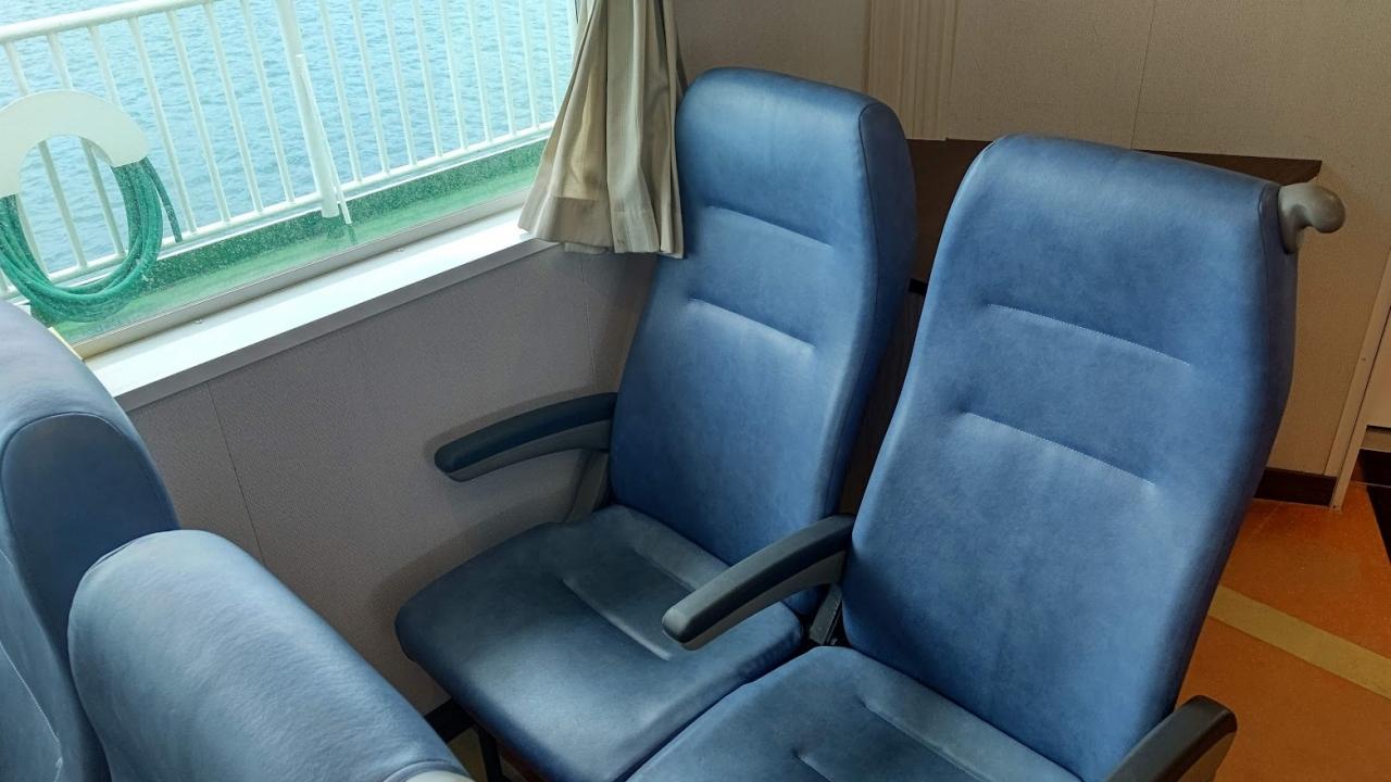 離発着時、アップライトポジションでのシートは、足元はゆったりです。