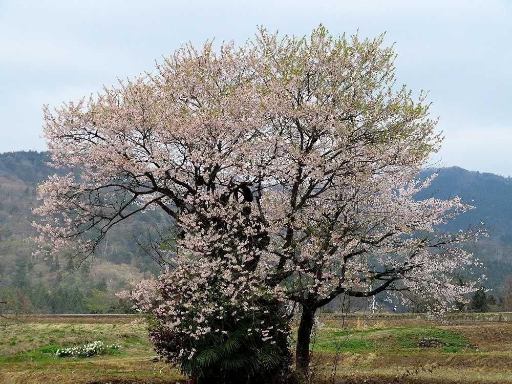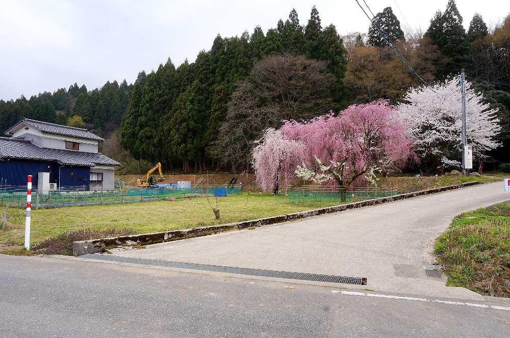 4月3日、あさひ舟川の四重奏を見学した後、高速に戻り、一つ先の黒部ICで降りて、長引野へと走る。スマホのナビが思うように動かず(この日はちょうど携帯回線の不具合が発生していた)、持ってきた富山県の地図帳を頼りに長引野に到着。桜の場所はすぐにはわからなかったが、道を歩いていた人に聞いたら、すぐそばにあり容易に着くことが出来た。桜はごく普通の民家の庭先のようなところにポツンと咲いていた。