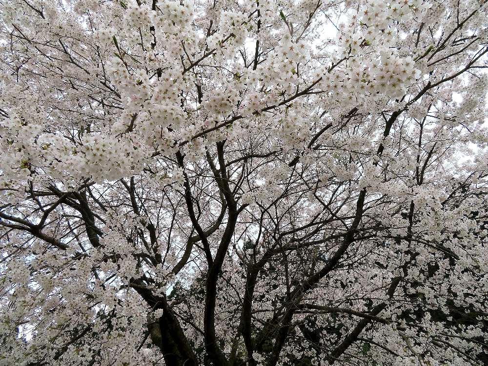 これは、別の桜を見に行く途中で、上記とは反対の方角から撮影したしだれ桜。濃い方のしだれ桜は実際には二本あることがわかる。