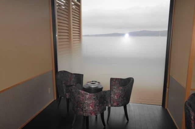 1階喫煙ルームはロビー奥で、海の目の前です。