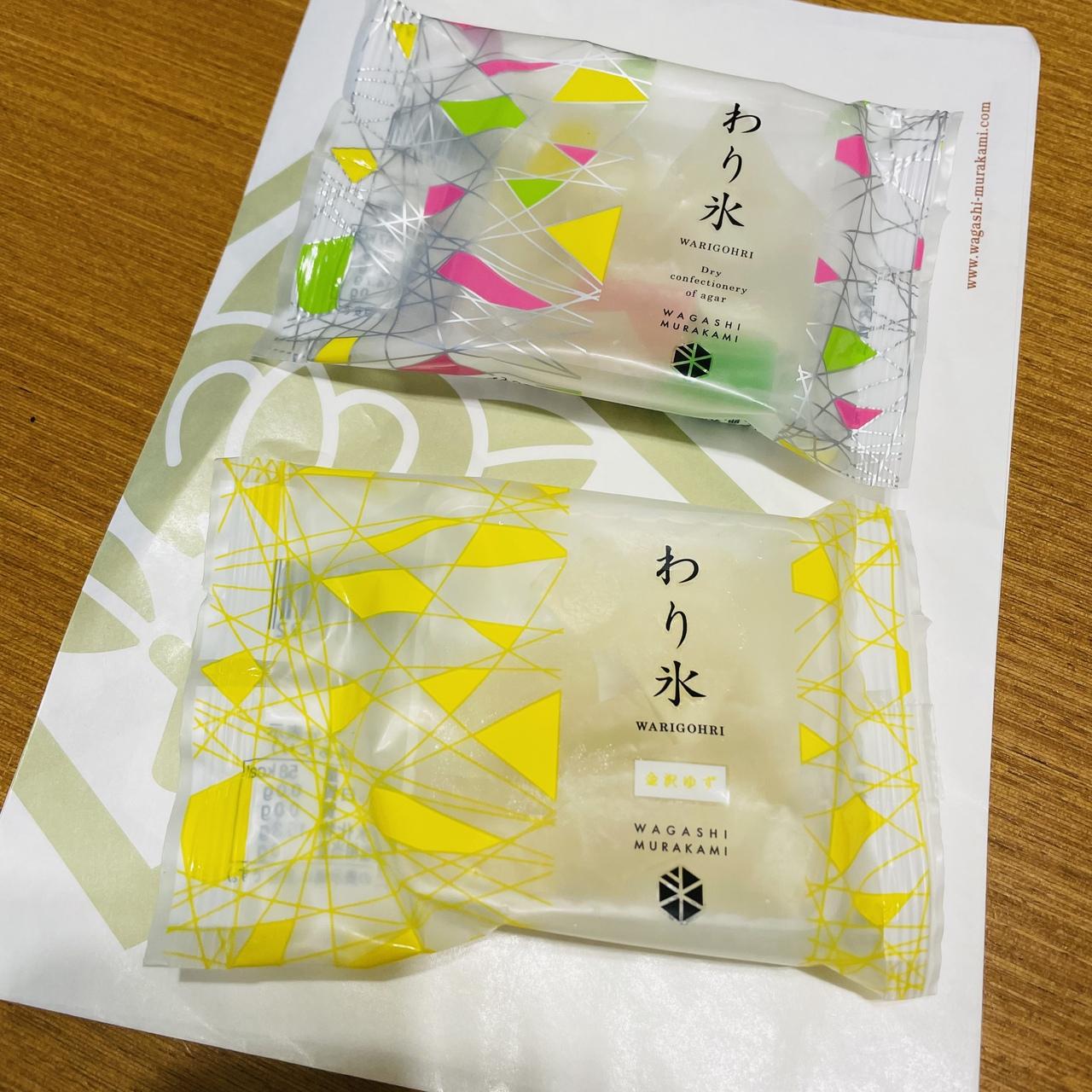 空港の売店で買った「わり氷」というお菓子で、寒天のまわりに砂糖がけされたもの。 -